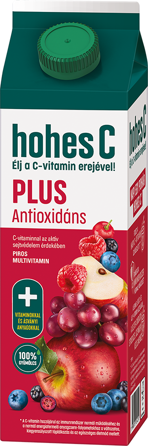 Vegyes gyümölcslé, amelyből már egy pohár fedezi az ajánlott napi C-vitamin mennyiséget, a hozzáadott 7 vitaminból pedig az ajánlott napi mennyiség háromnegyedét. Gondoskodjon napi vitaminbeviteléről a finom Hohes C PLUS Antioxidánssal!