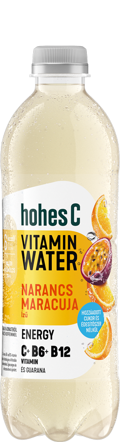 A hohes C Vitamin Water Energy fontos tápanyagokkal látja el az energiatermelő anyagcsere-folyamatokat és a sejtek védelmét. A C-, B6- és B12-vitamin hozzájárul a normál energiatermelő anyagcsere-folyamatokhoz, és segít csökkenteni a fáradtságot és a kimerültséget. Az E-vitamin segít megvédeni a sejteket az oxidatív stressztől. Élvezze a narancs és a maracuja frissítő kombinációját - hozzáadott cukor és édesítőszerek nélkül. Vegán és mindössze 6 kcal/100 ml ideális, az aktív életmódhoz. Kiegyensúlyozott étrend és egészséges életmód ajánlott.